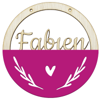Houten hart hoepel in kleur met naam fusia