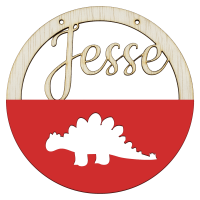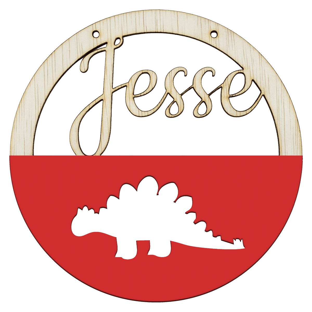 Houten stegosaurus hoepel in kleur met naam lipstick rood