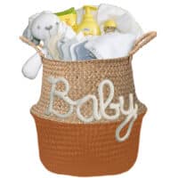 Gevulde kraam mand neutraal Babygift diep oranje