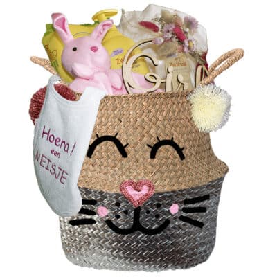Verlegen kraam mand babygift neutraal met naam