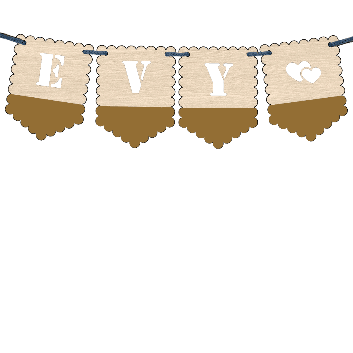 Houten vlaggetjes ribbel sticker gratis koord goud